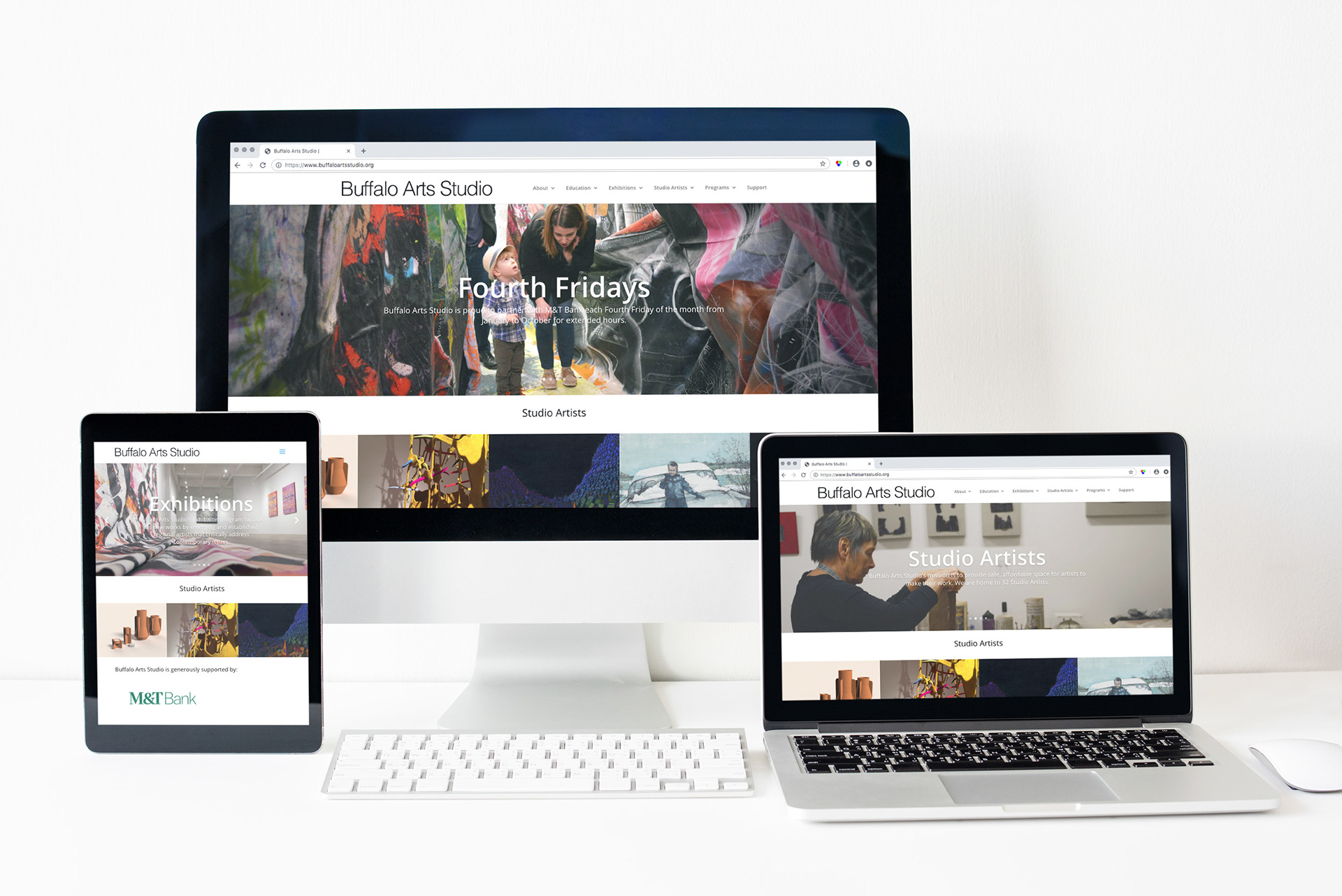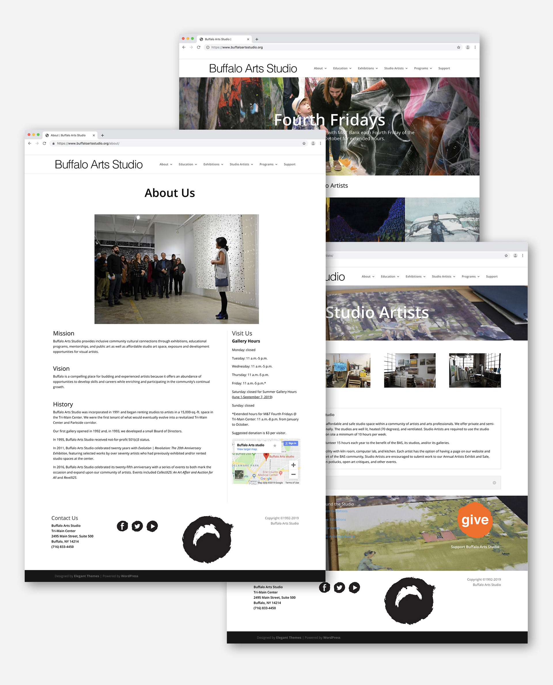 For Buffalo Arts Studio, Twisted Rope created a visual theme and a site design based on the Buffalo Arts Studio Branding.