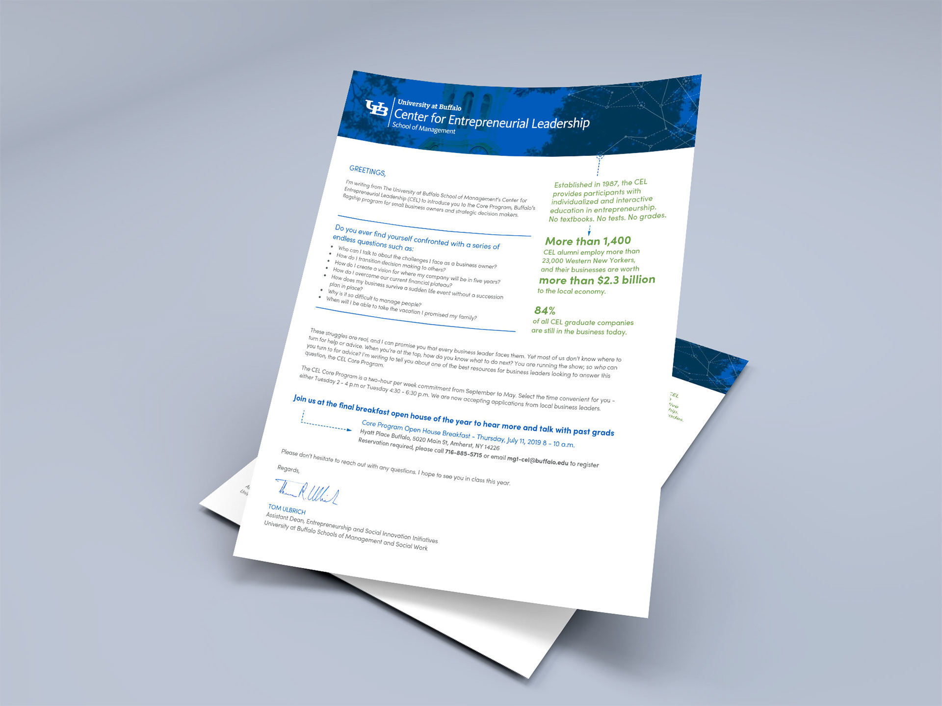 For a University at Buffalo CEL Program, Twisted Rope created a handout and postcard promoting the Open House event.